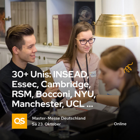 Ich möchte dabei seinMaster gesucht? Finde dein Studium auf der QS Master-Messe – jetzt gratis anmelden!